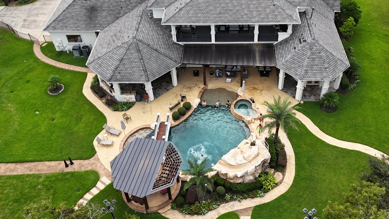 La Mansion Houston a Luxurious Backdrop 3 story estate conveniently located just minutes from Downtown Houston. With its high ceilings, panoramic windows, and elegant interiors, La Mansion is crafted for both grand entertaining and intimate relaxation. The natural light pours in through oversized windows, creating a warm, inviting atmosphere while offering beautiful views of the backyard oasis.